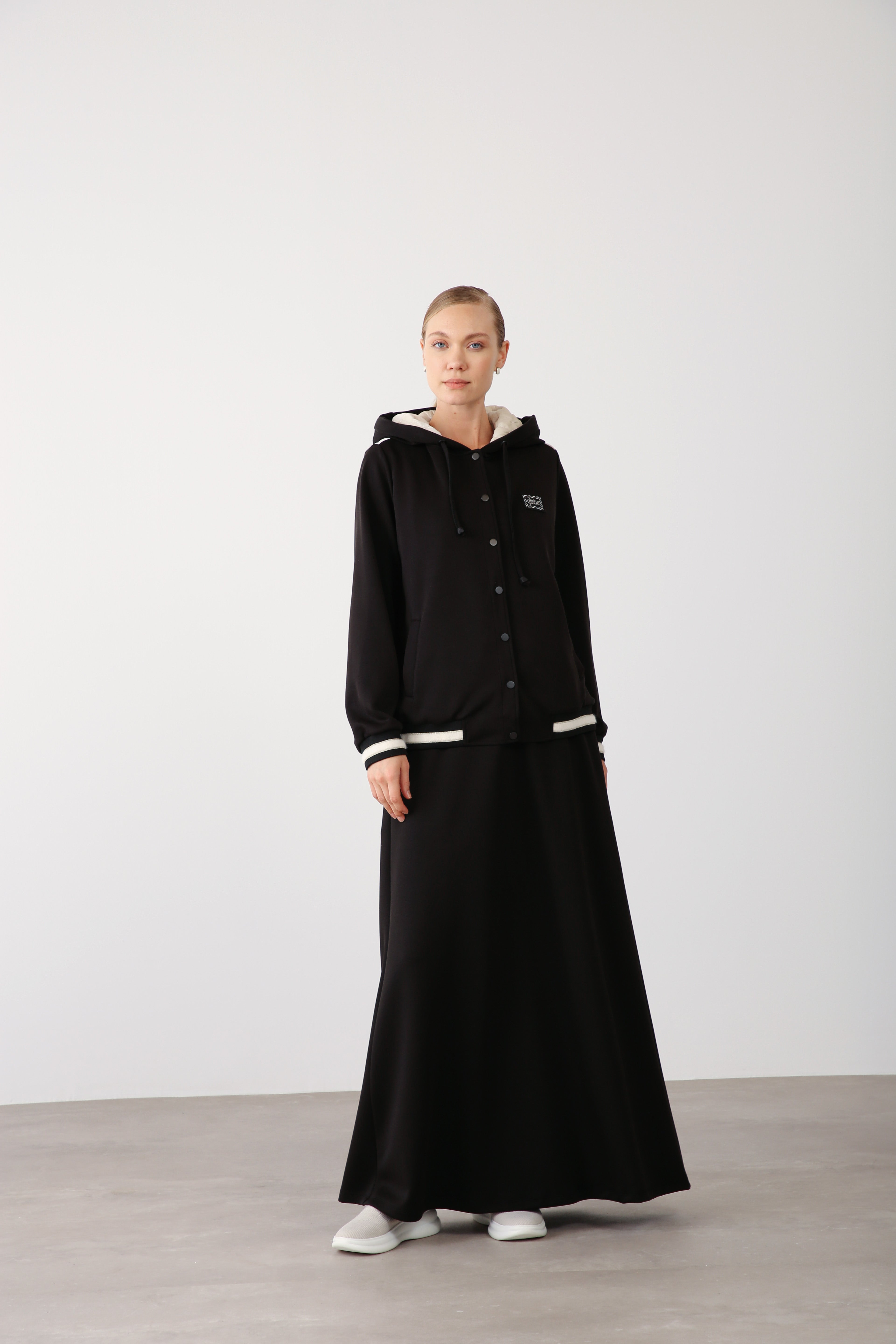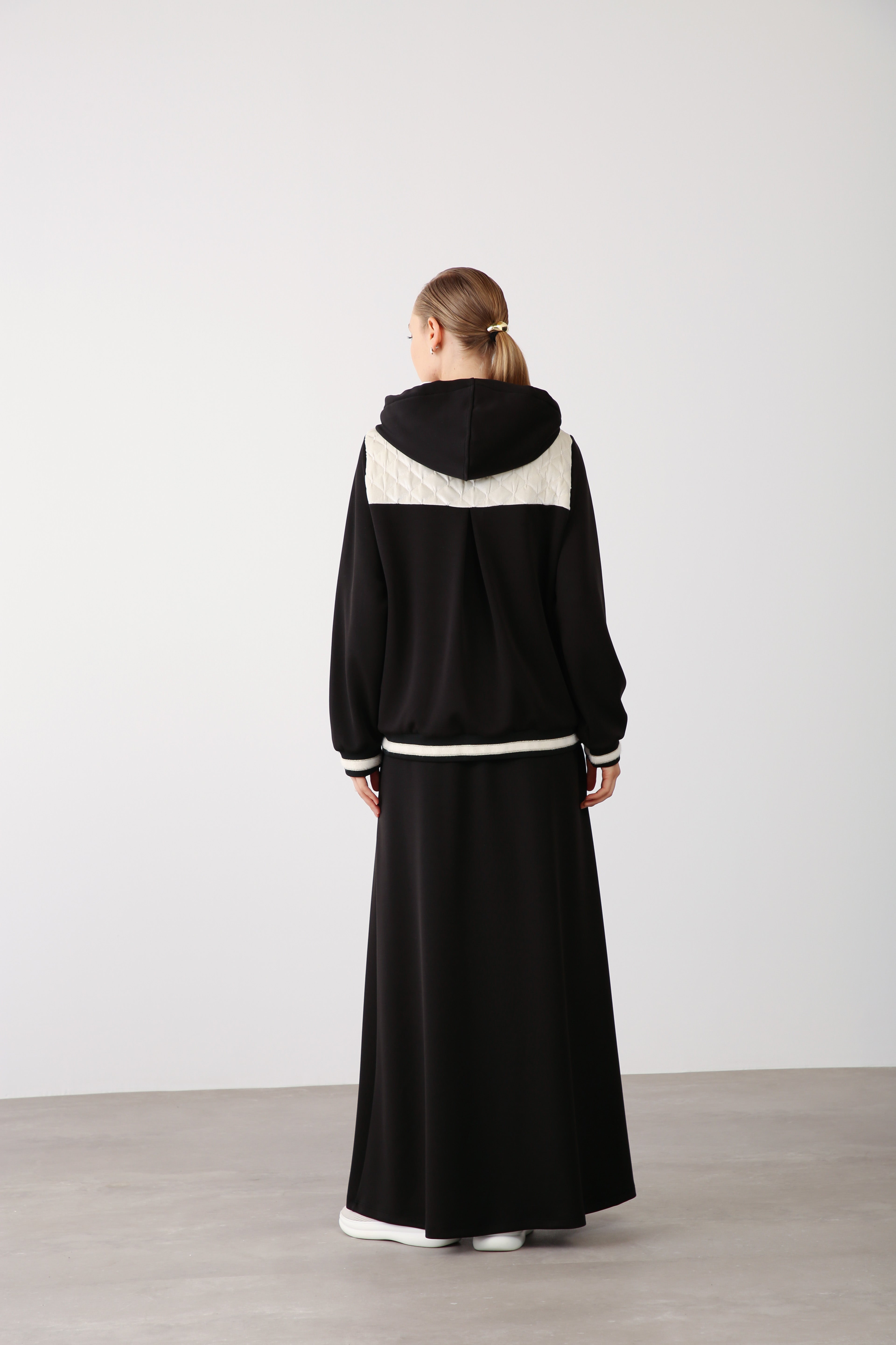 An ideal choice for boutique owners curating sophisticated essentials, this skirt blends modern elegance with versatile wearability. Pair it with the matching quilted hoodie jacket for a complete, elevated ensemble.