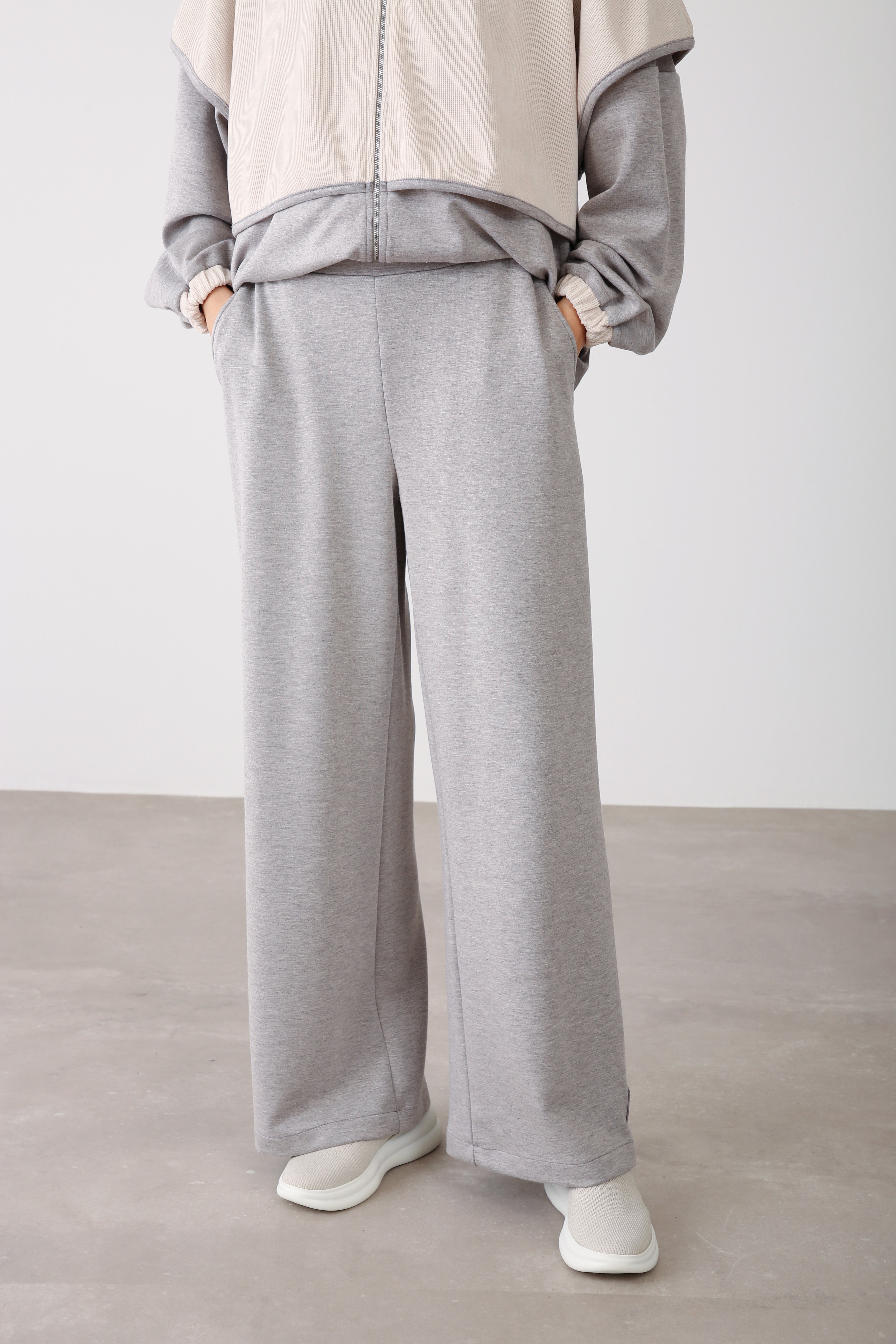 Designed for contemporary comfort, these wide-leg Oysho pants redefine casual sophistication. The soft grey melange tone and fluid drape enhance its versatile structure, making it ideal for both lounging and elevated daywear. Crafted from high-quality midweight fabric, the model offers breathable ease while retaining its elegant shape.