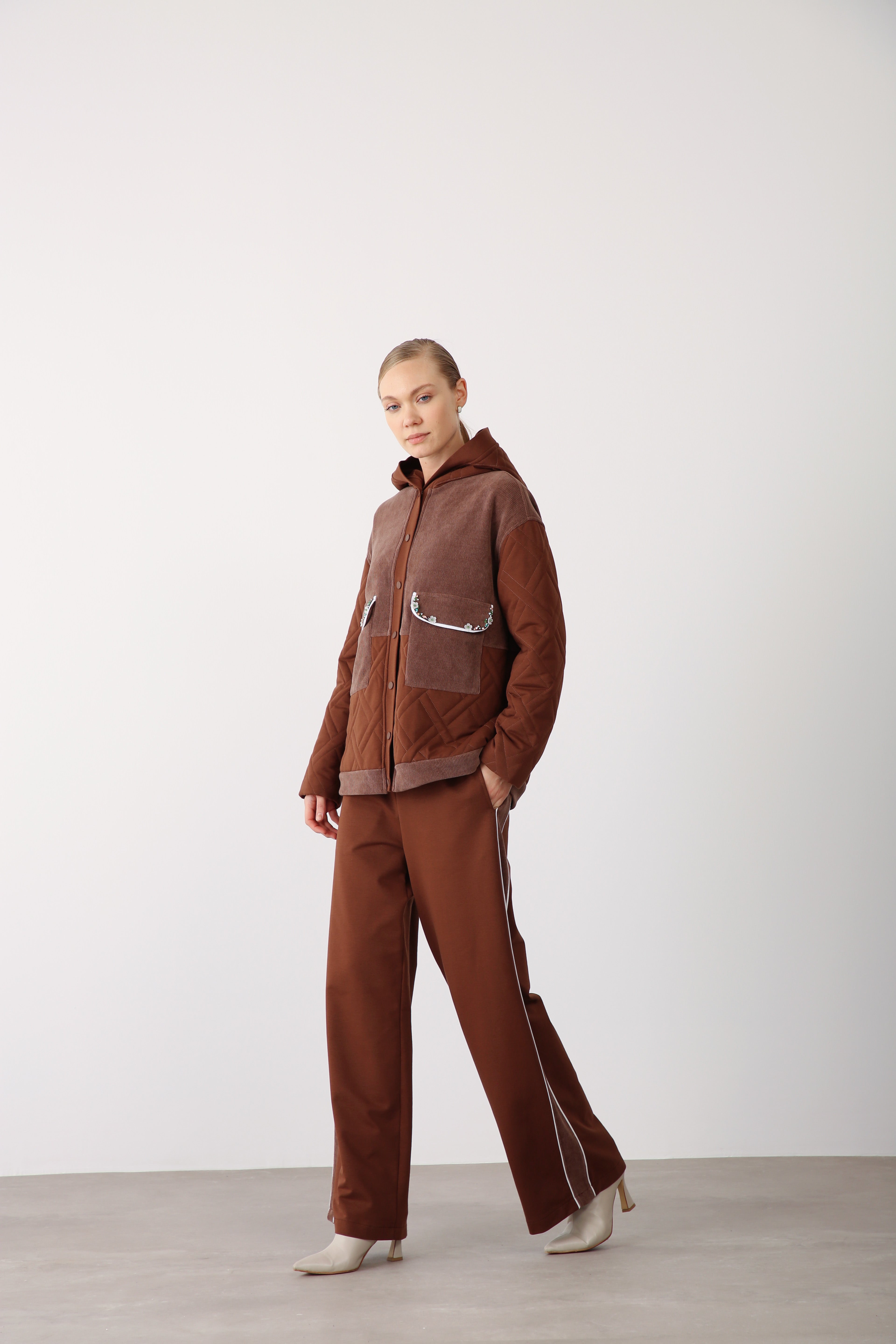 This brown wide-leg pant brings warmth and modern elegance together. Made from high-quality two-thread fabric, it features a soft texture and elastic waistband for a comfortable yet sleek fit. Its wide, flowing cut flatters all silhouettes, while the neutral brown tone adds a sophisticated earthy charm to wholesale collections.