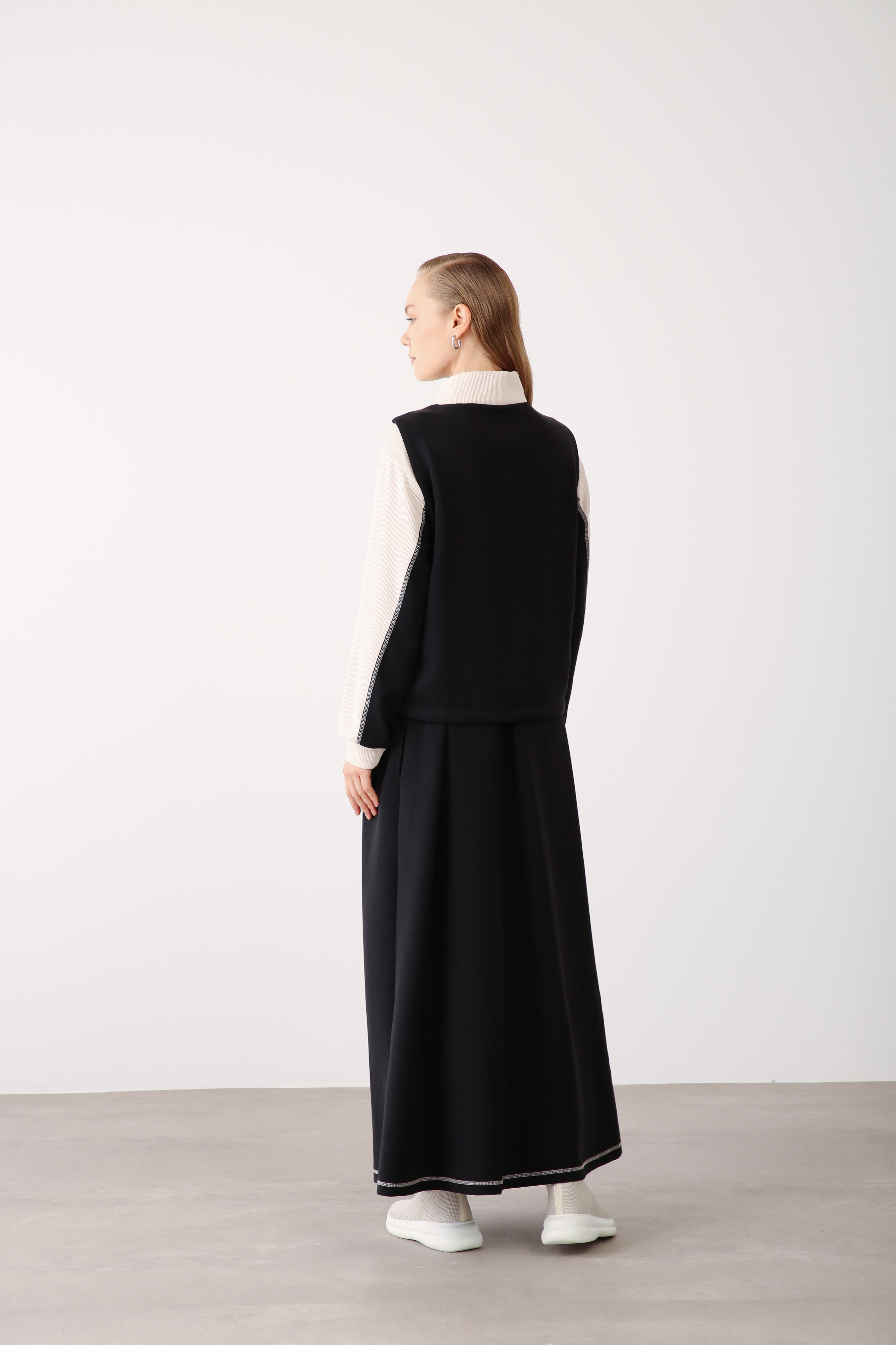 Made from durable Ultra-Soft Stretch Modal fabric, this black zip-up vest delivers a clean, professional look that aligns with current minimalist trends. The contrast panels enhance its visual depth, while the ribbed texture ensures a structured yet comfortable fit. Ideal for year-round wear, it combines practicality with refined aesthetics.